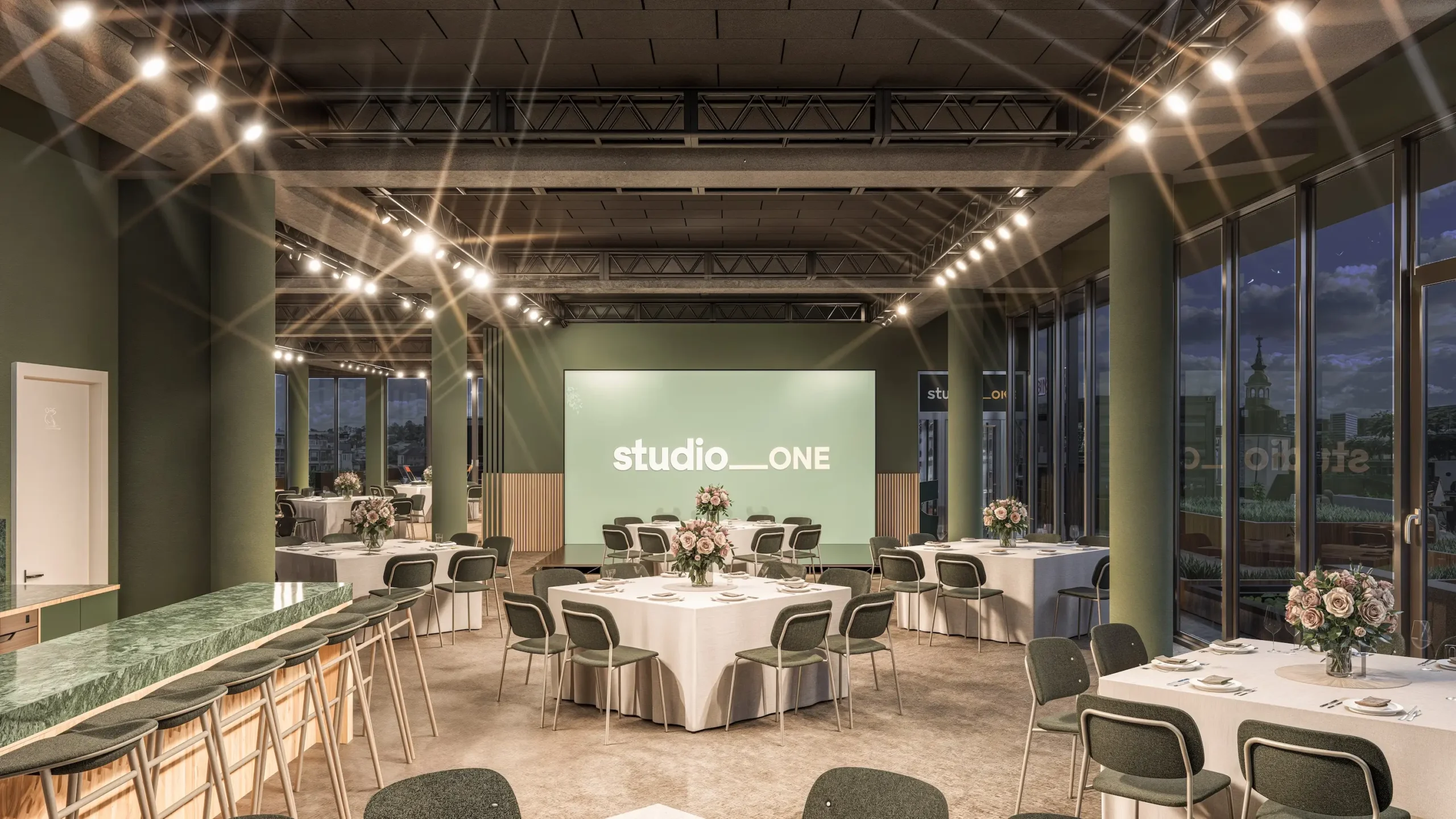 Mit skyline haben wir diesen Gedanken weitergedacht: ein Eventspace, der jeden Anlass zu etwas Besonderem macht. Offen, urban und grün zugleich. Ein Ort, an dem das Licht der Stadt durch die Fenster fällt und alles möglich wirkt.